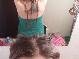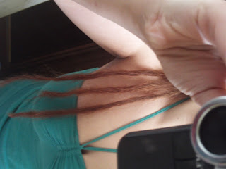 I decided to do what I could with my poor little comb this morning. I only got two more done before it completely gave up on me. lol. So I have three dreadlocks at the nape of my neck. As I'm doing the dreadlocks I'm realizing just how damaged my hair is already. lol. The ends are sooo split. I have a crap ton of frizzies in the dreadlocks. But palmrolling helps with that.