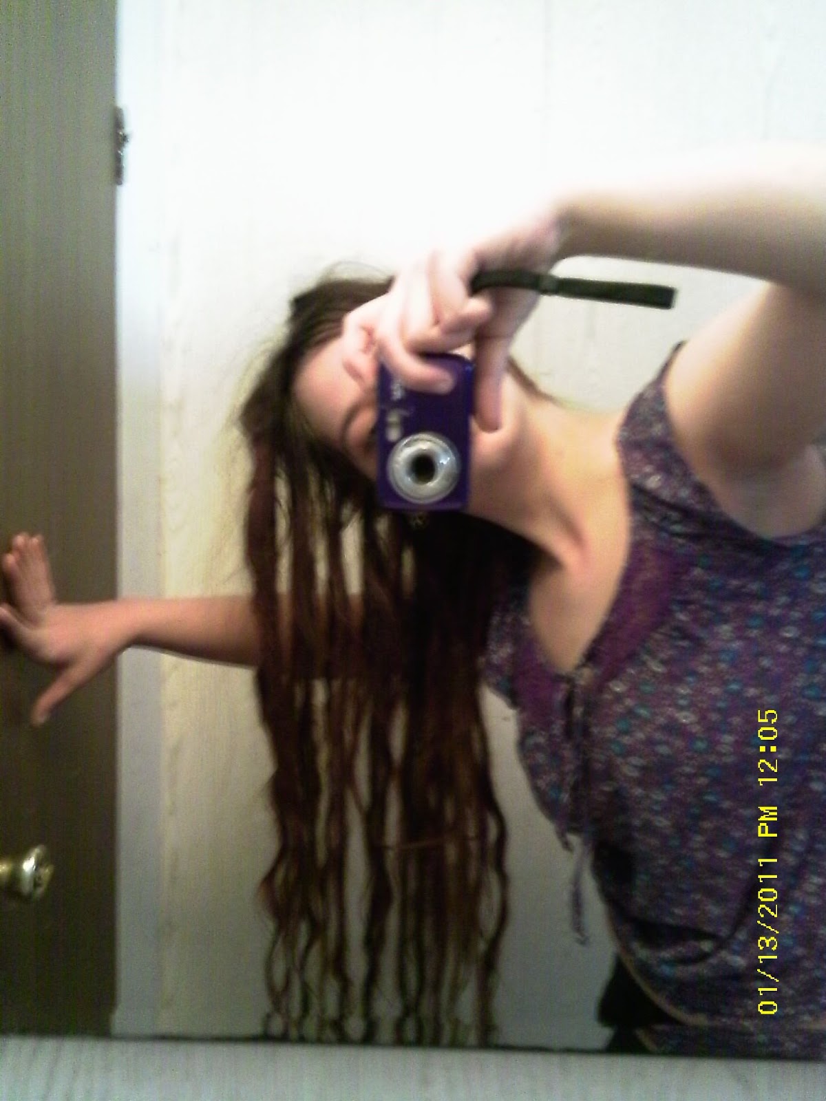 So yeah, they are coming along pretty well. The crazy insane itch is gone. All I had to do was wash my hair once for it to disappear. Which is okay in my book. I was starting to go crazy because of it. I've lost a little length since I started them. I say about an inch to an inch and a half. Mr. Fatty lost a CRAP TON of length though. It started at my waist and it's right above my boob now. That's a lot. I hope all the dreads don't lose that much, but if they do that's fine. I'll still love them.